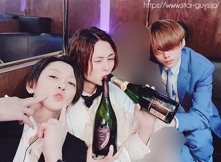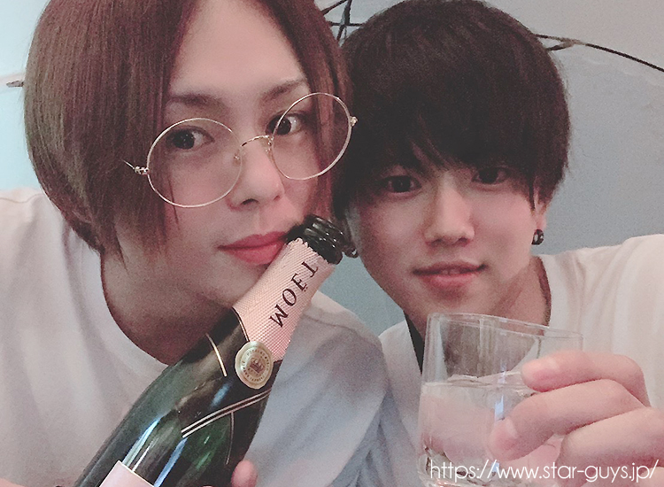 お席ではすでにお祝いのシャンパンが!!イケメンスリーショットをパチリ☆