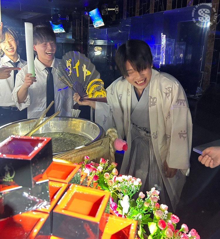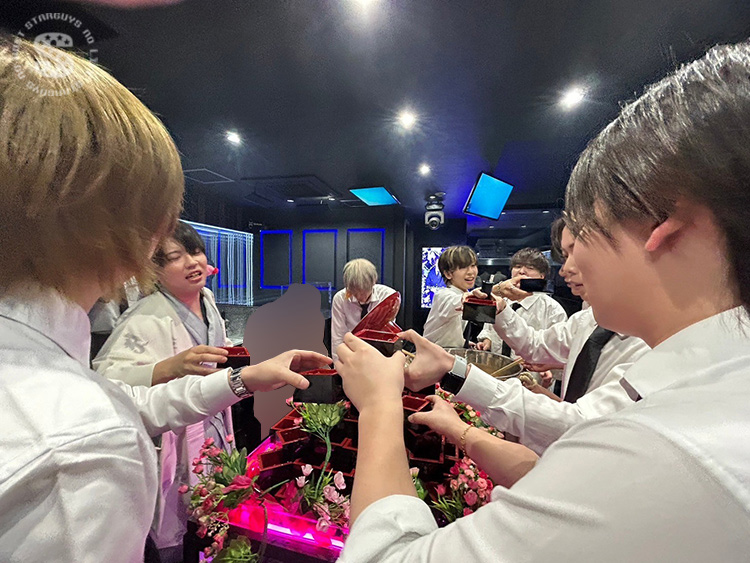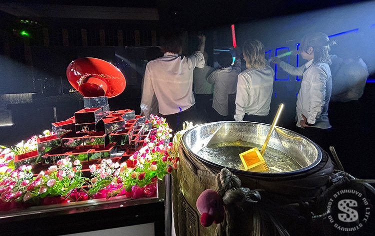 ホストのバースデーイベントには珍しくシャンパンタワーではなく升タワーで鏡開き🎍