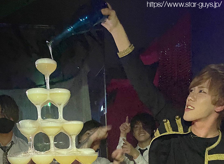 メインイベントのシャンパンタワーに「エンジェルヴィンテージ」を注ぐキリトくんを激写( ゚∀゚)ノ◇・+∵.+。