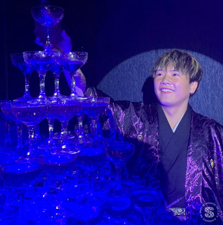 ラストはゴージャスなシャンパンタワーです!!珀人くんの袴に合わせた紫色に光輝くシャンパンタワーが登場しました☆