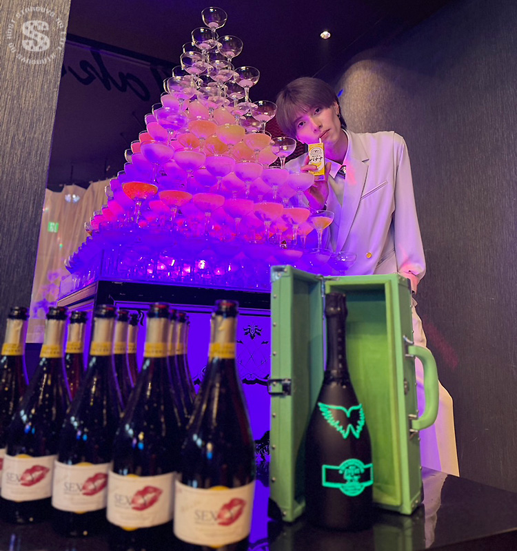 お店のド真ん中で燦然とかがやくシャンパンタワー!!