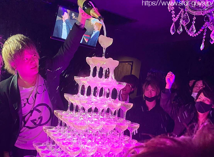 大きなイベントにはやっぱりシャンパンタワーですよね☆ 店内に響き渡るシャンパンコール!!