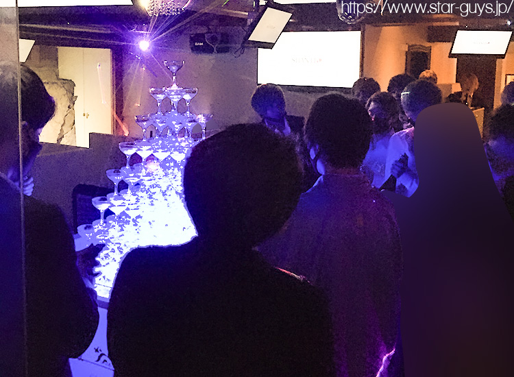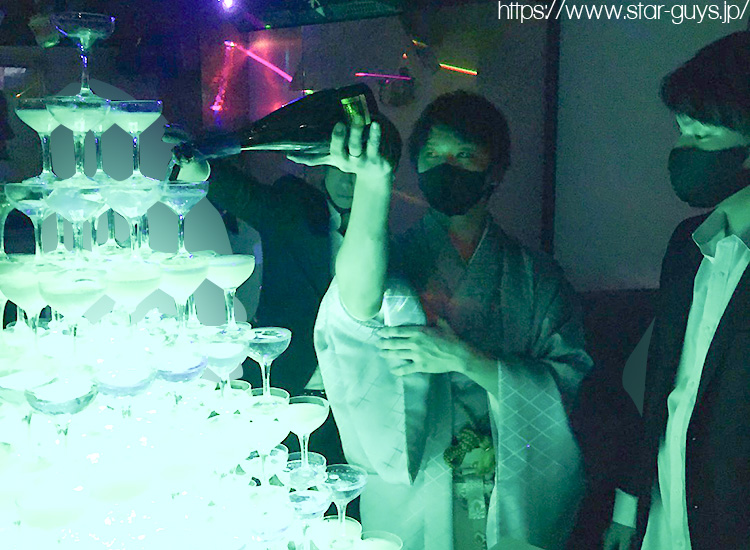 メインイベントのシャンパンタワーがスタート☆ まずは夏希幹部補佐がタワーイン!!