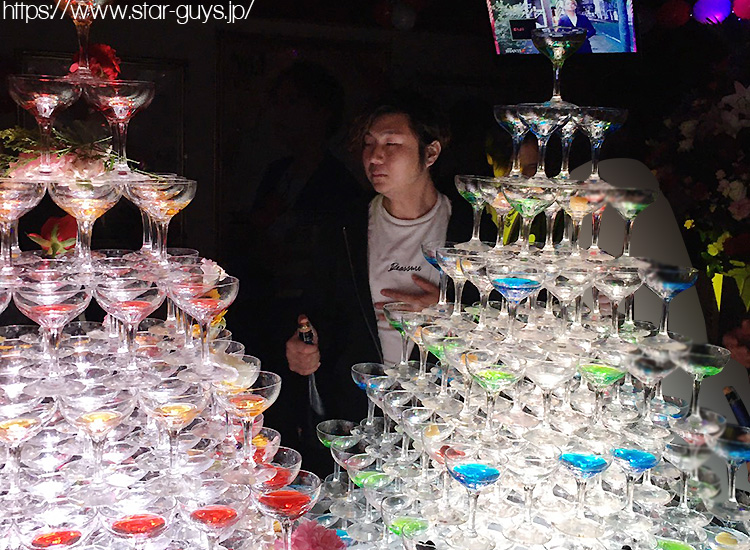 メインイベントのシャンパンタワーが始まりますよ~今日はいったい何基用意されているんでしょうか…!?