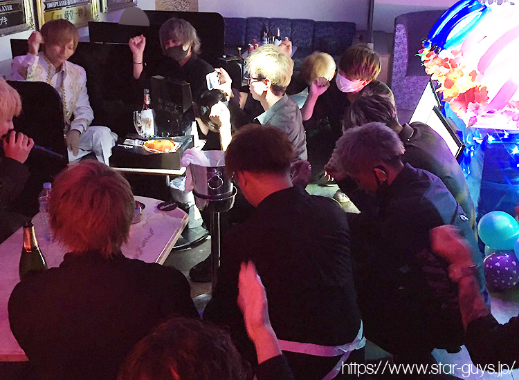 お席でもお祝いのシャンパンがおろされ、スタッフのみなさんがコールで盛り上げます♪