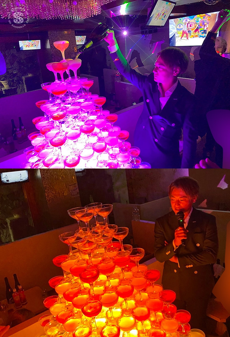 タワーの山頂から滝のようなシャンパンが下流へ流れ込みます!!・:*+.(( °ω° ))/.:+