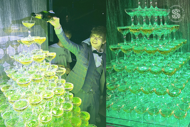さあ!ドお待ちかねドキドキのシャンパンタワーが!!