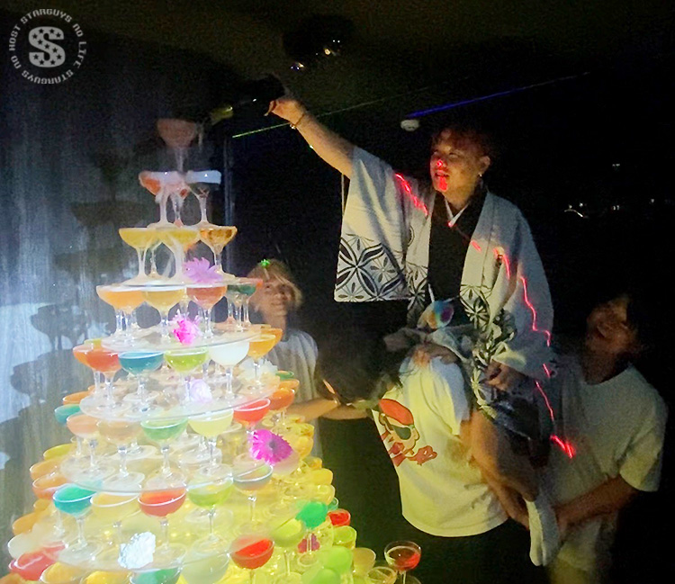 あちこちのお席からお祝いのシャンパンが