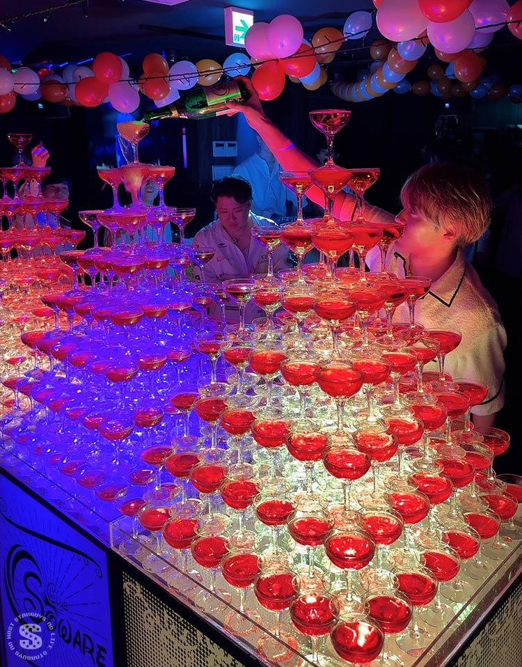 豪華シャンパンタワーに山積みのボトル、さらには鯛まで登場⁉️