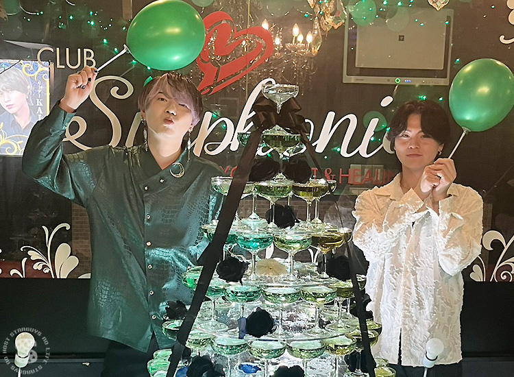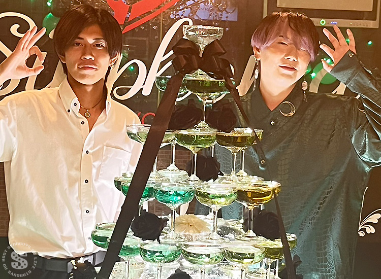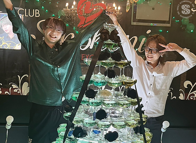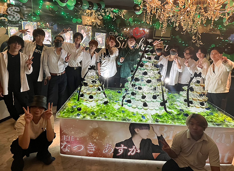 店舗中央を陣取る特大シャンパンタワー!! 誕生日の主役である なつき あすか くんをお祝いして建てられました♪