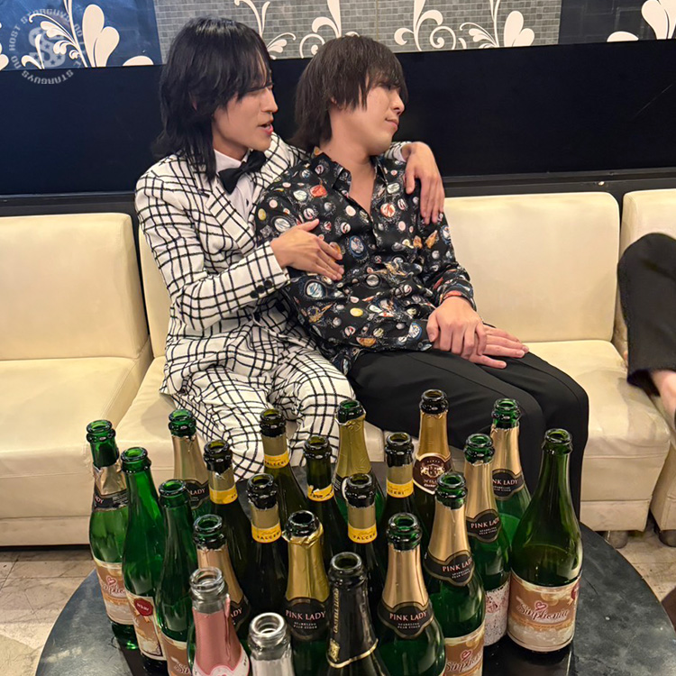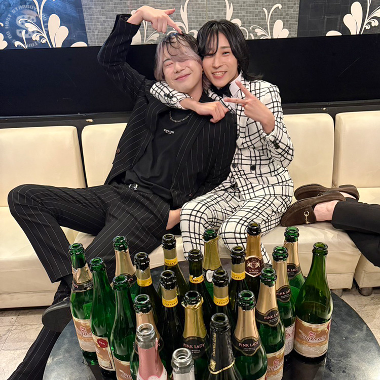 机にいっぱいのシャンパンを並べてご満悦🎶