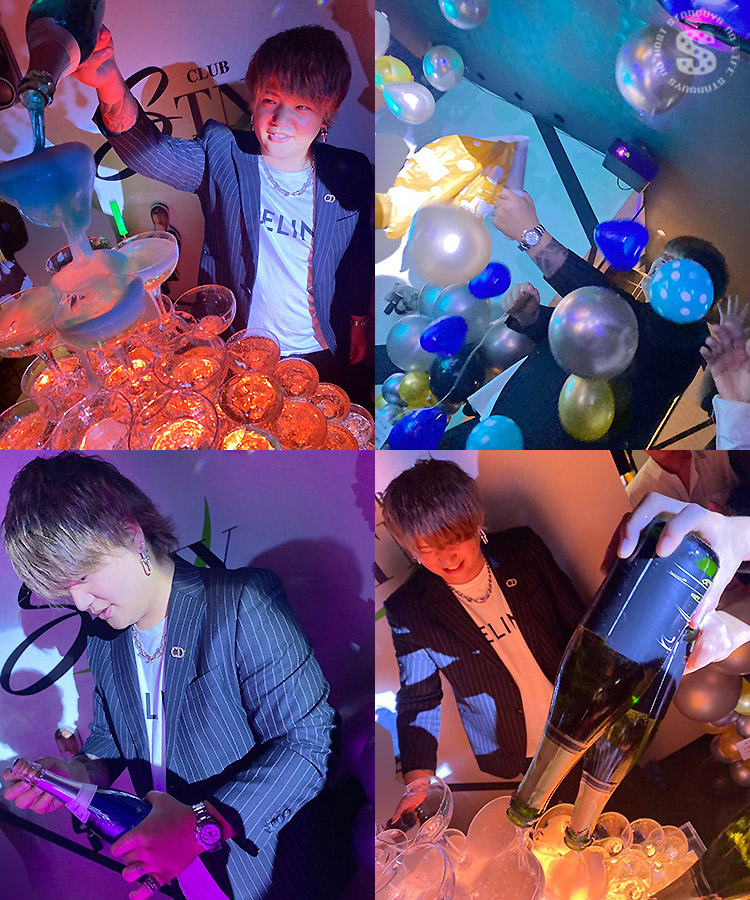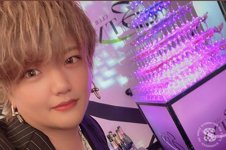 まずは特大のシャンパンタワーとの自撮りをご紹介★