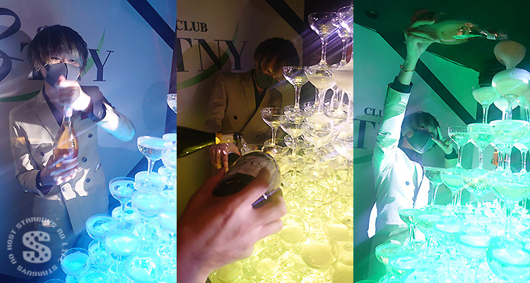 メインイベントのシャンパンタワーでは