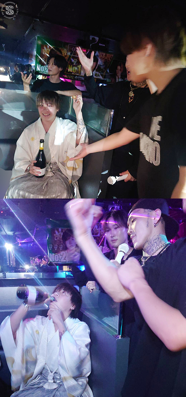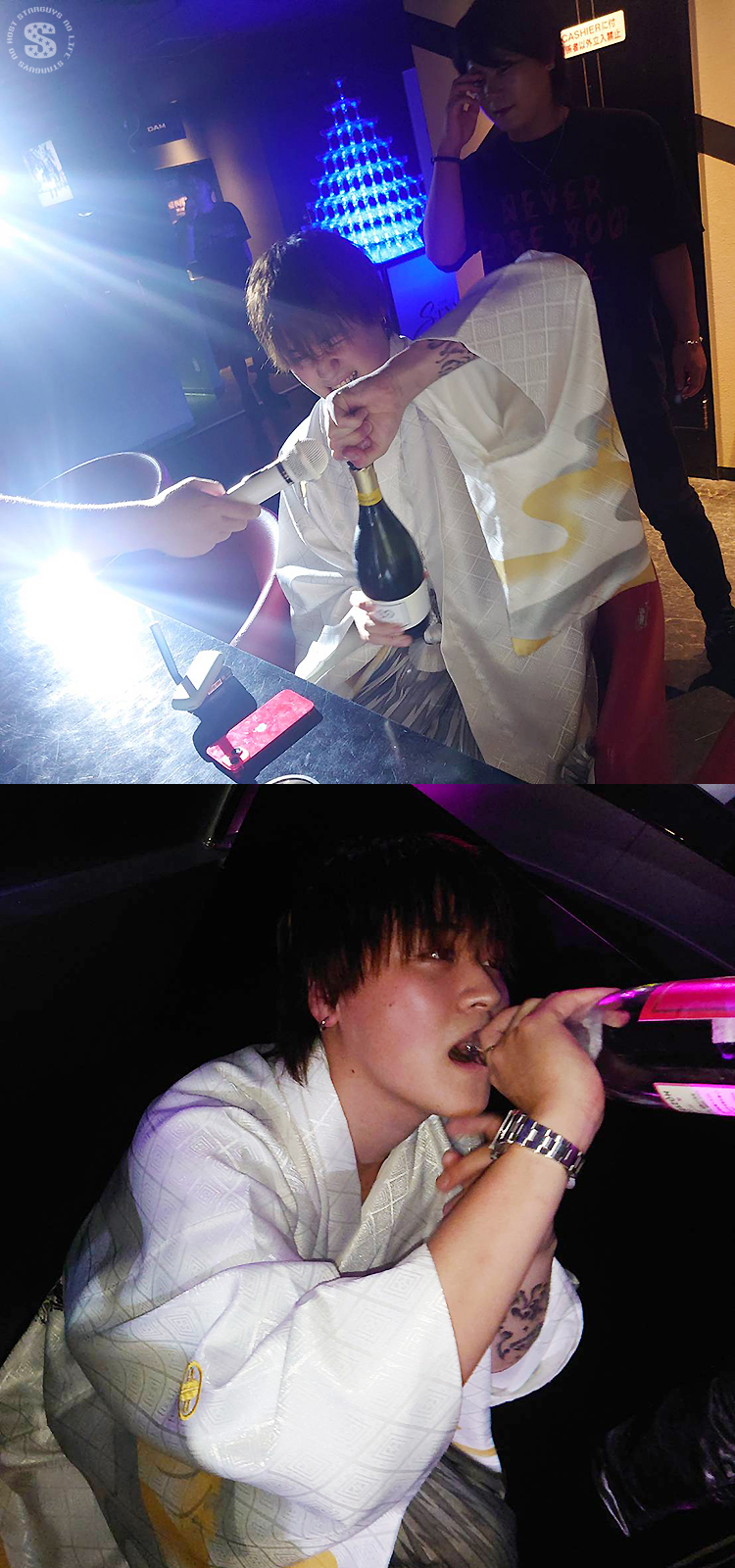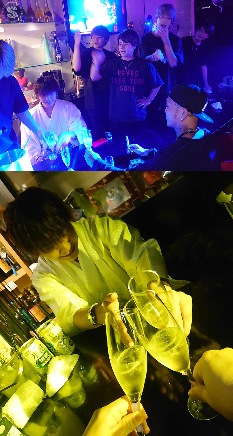 別のお席でもお祝いのシャンパンがおろされ、豪快な直ビンイッキで飲む主役のめい幹部補佐!!