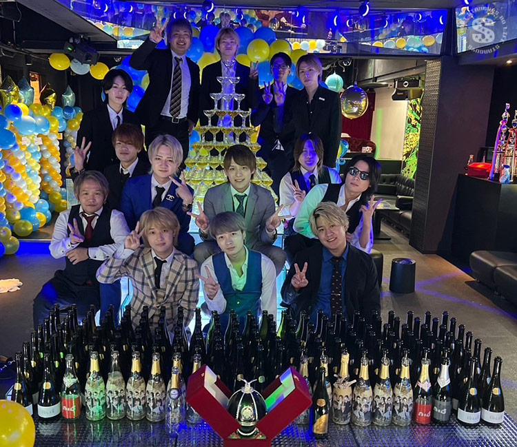 輝くシャンパンタワーが店内を彩り、オリジナルシャンパンや豪華なインペリアルコレクションが贈られるたびに、場内は大盛り上がり🍾✨