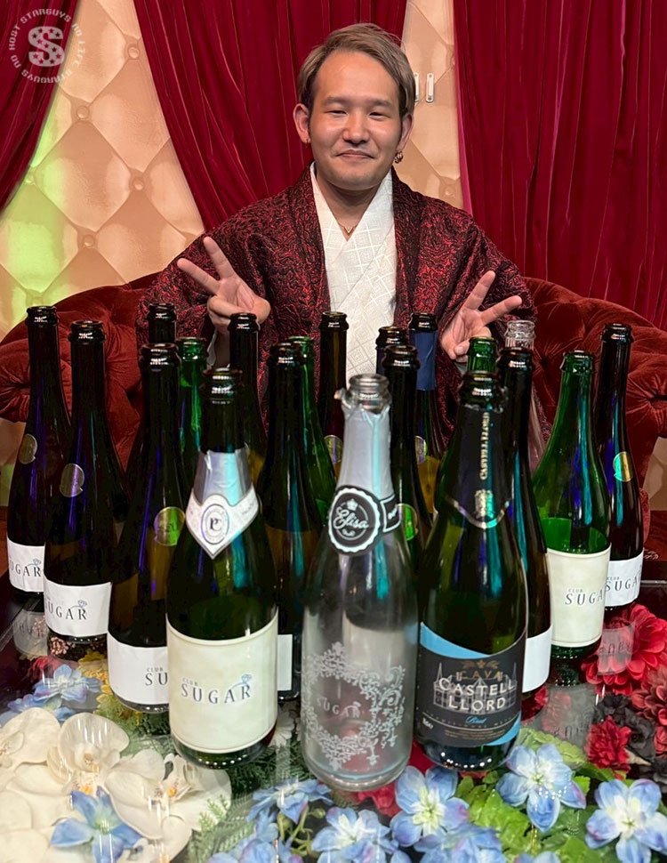 艶やかな和装姿と、テーブルを埋め尽くすほどのシャンパンの数々が印象的✨