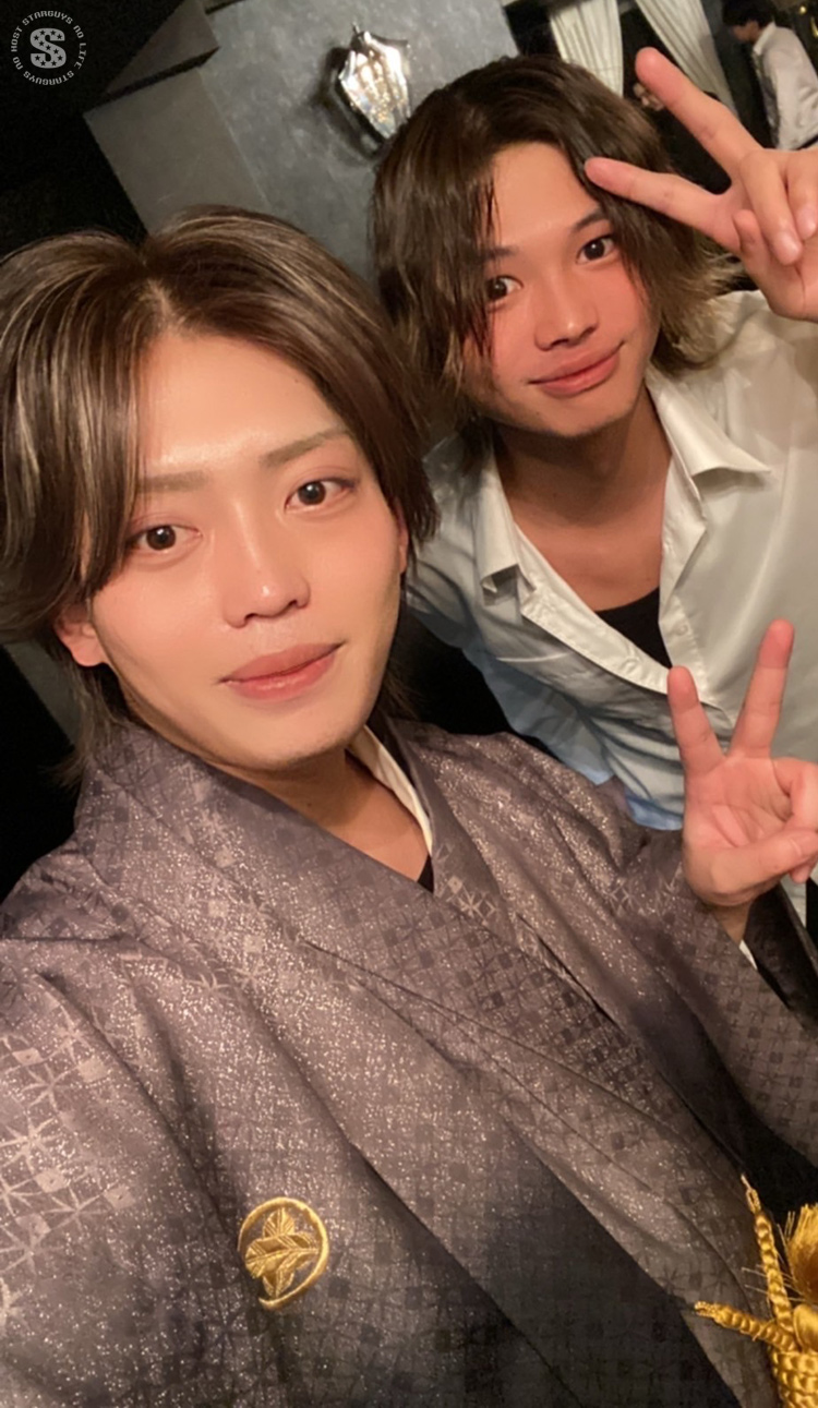 かっこいい袴に身を包み、黄色い照明が輝くシャンパンタワーで祝福されたKAIJIさん😳💛