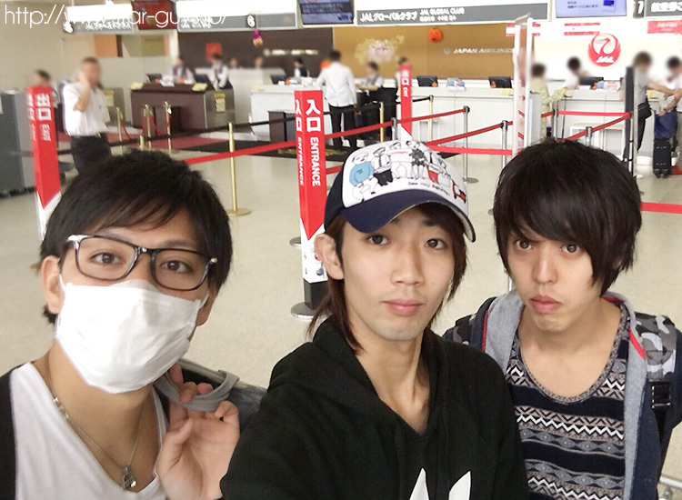 空港について、迅代表&カイジくん&さくらくんとのスリーショットをパチリ♪