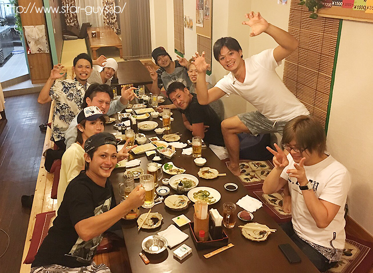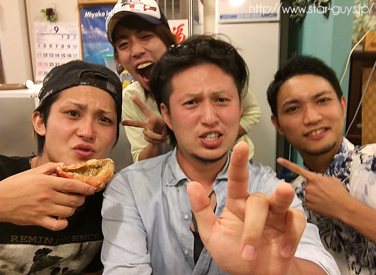 沖縄でも飲みまくりの皆さん☆迅代表筆頭にシーサーポーズで記念撮影♪