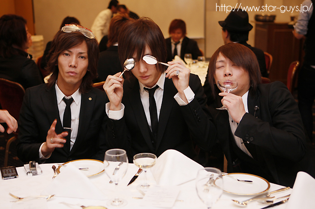 乾杯が終わり、宴会がスタート♪DSDの拓哉主任&英二くん&スプーンでウルトラマンをしているのは遥幹部補佐です(笑)
