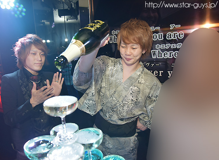 両店のイケメンスタッフ達が皆で注ぎ込んでいきます!!シャンパンがみるみるなくなる〜☆