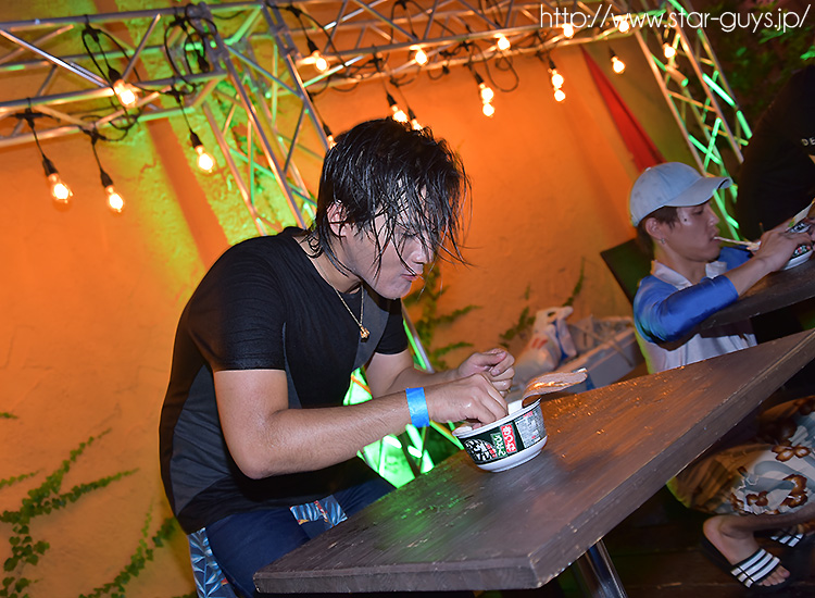 ステージでは、超熱々のどん兵衛を箸を使わずに食べる早食い選手権が開催されました!!なかなかの熱さに苦戦しながらも手を突っ込んで食べていきます( ゚Д゚)