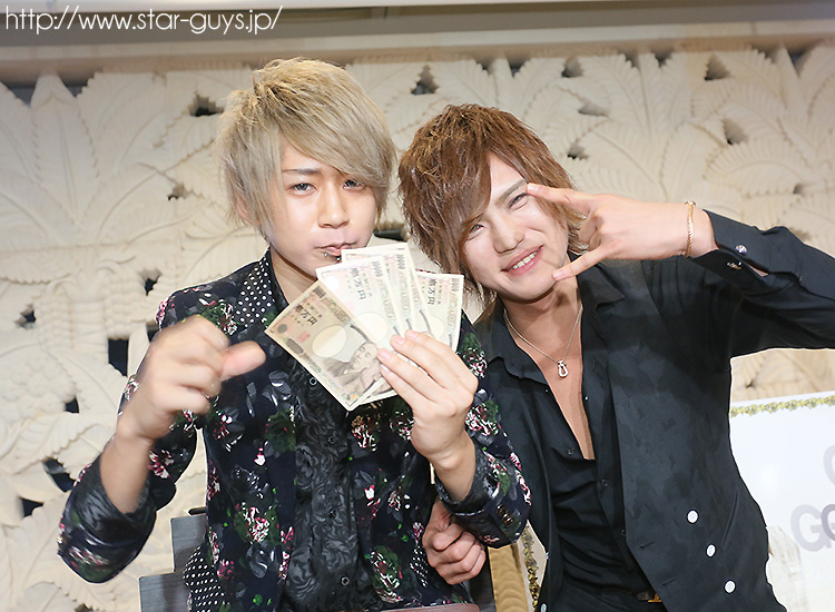 1万円札束を両手で持ち、ぷりお社長&楚和オーナーと記念ショット☆何枚の1万円札を持っているのでしょうか!?