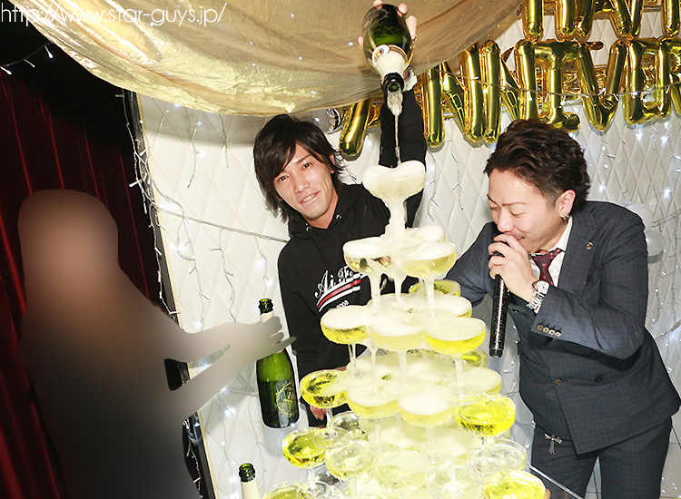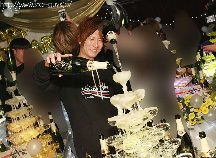 タワーに注ぎ終えシャンパンにキスをするNaoki幹部☆