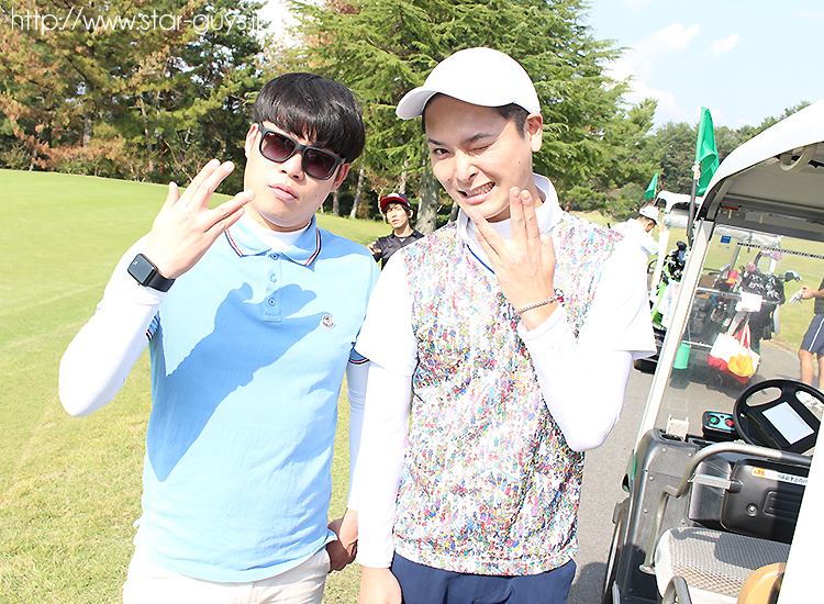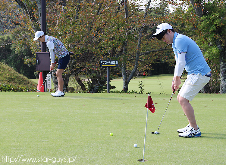 スタート前に、真剣な表情でパター練習に取り組み隼人Supervisorとぢゅうべぇ幹部!!