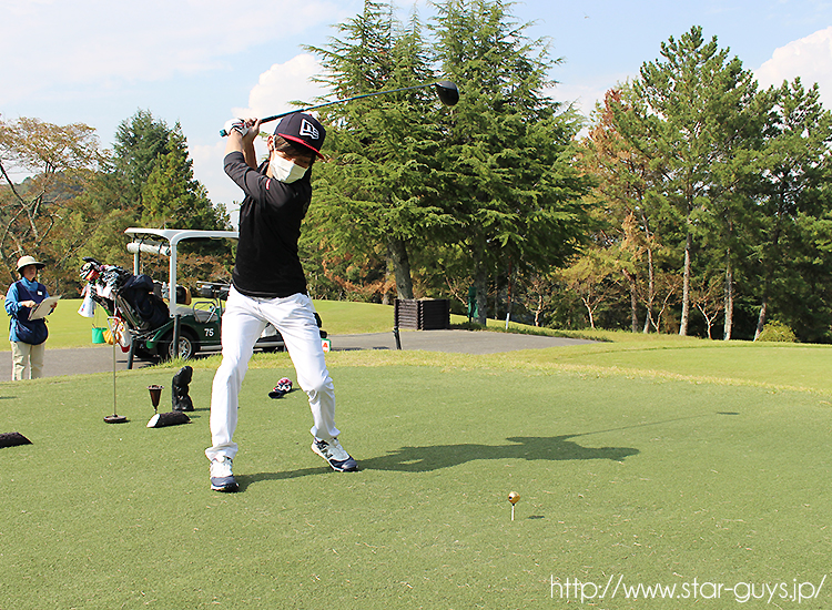 優勝候補の皇綺副主任のティーショットです☆イィ~スイングしてます!!