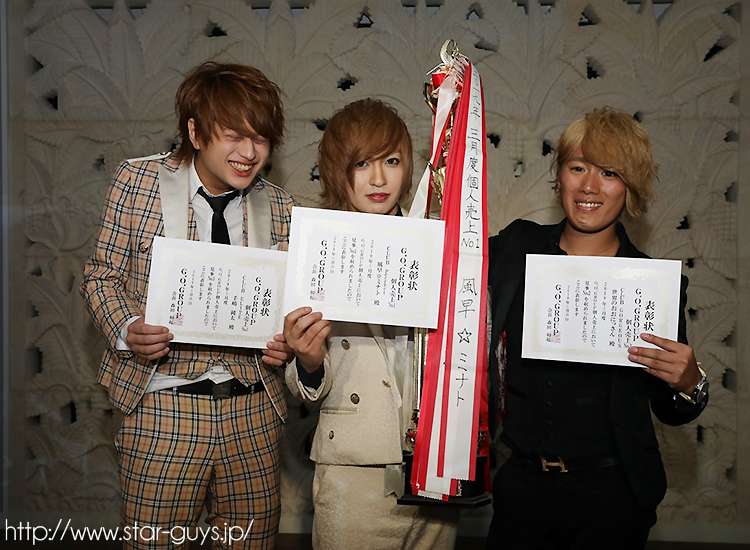 3月度売上TOP3!No.3 ELITE 手嶋純太!No.2 GORGEOUS 世界のおおにっさん代表!No.1 Perfect 風早ミナト主任でした☆