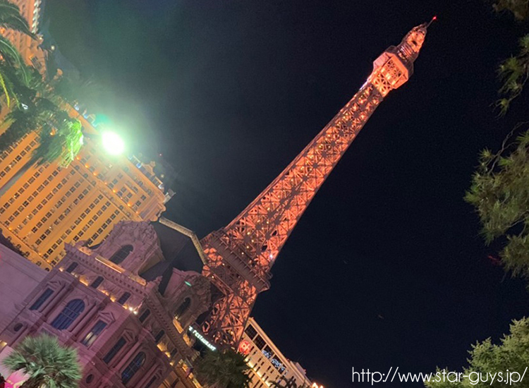 ラスベガスの名所『パリスホテルのエッフェル塔展望台』。こんな憧れの名スポットを見て回れるのもGOグループの旅行ならでは。