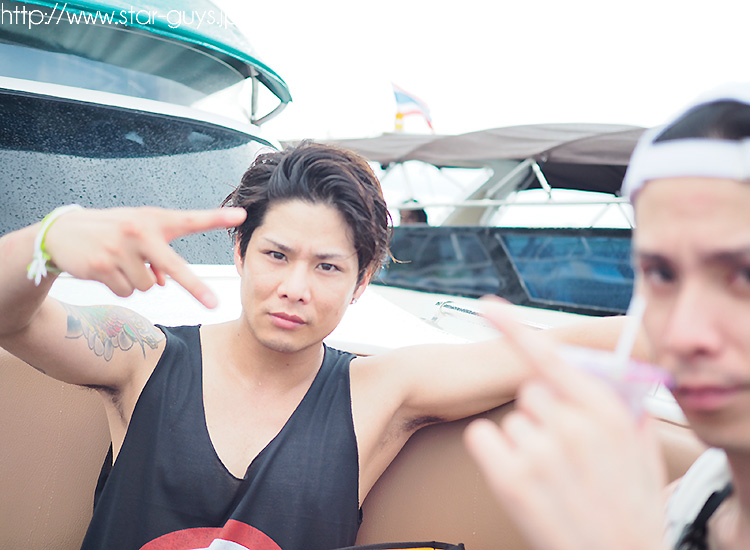 クルーザーの上で栄部長のクールフェイス