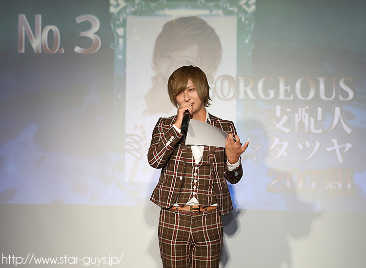 ここから~グループ組数ナンバーの発表です☆組数No.3は、GORGEOUSのミラクル☆タツヤ支配人!207組!!