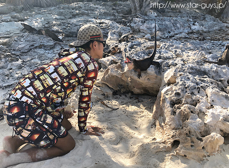 エグズーマ諸島ではアランズ・キーとリーフ・キーのみに生息するイグアナたちに餌付けタイムです!