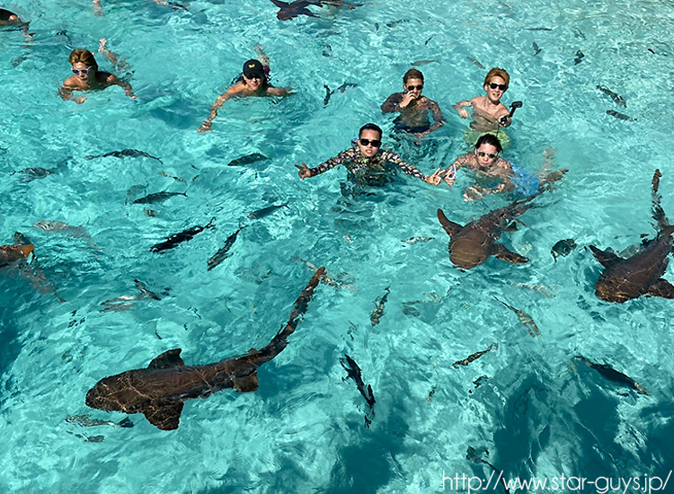 コンパスキーにも立ち寄り、浅瀬でコモリザメと一緒に泳げる珍しいスポットにも行きました!