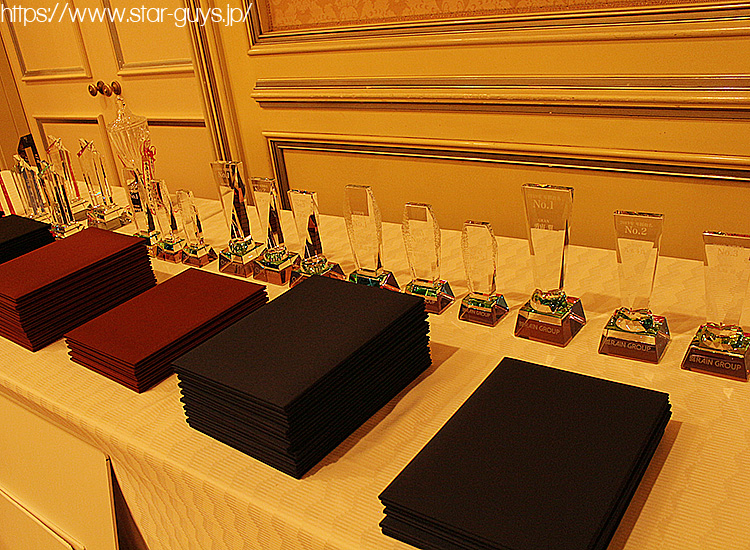 グループ表彰という事で、多くのトロフィーと賞状が並べられています!!