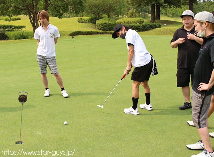 Ai-For-Youの拓哉社長はすでに本気モードで、みんなが見守る中熱心にパター練習!!