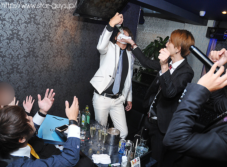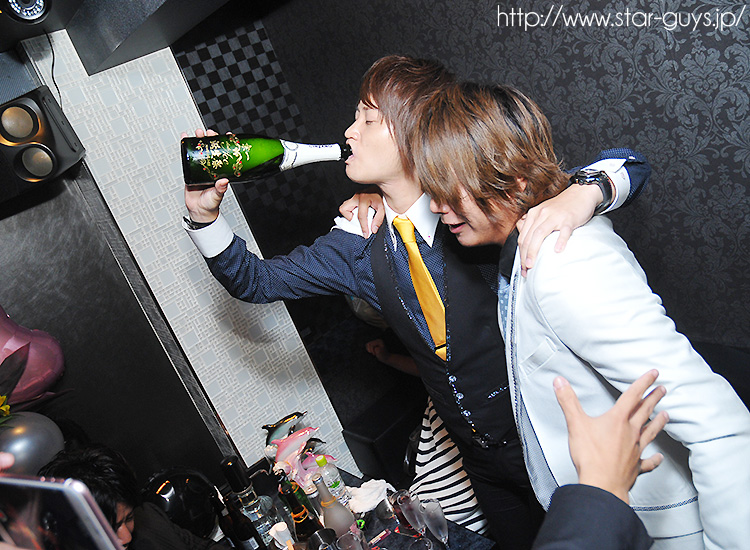 早速、京一くんの席でオリジナルシャンパンがおろされましたよ! 主役自らが豪快な直ビンイッキを披露(≧▽≦)