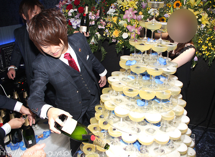 タワーの隅々までシャンパンを注ぎ込む王子☆