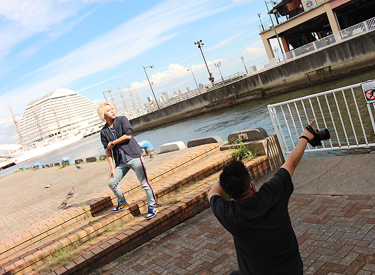 カメラマンの指示で顔と目線を左に傾ける湊士くん♪