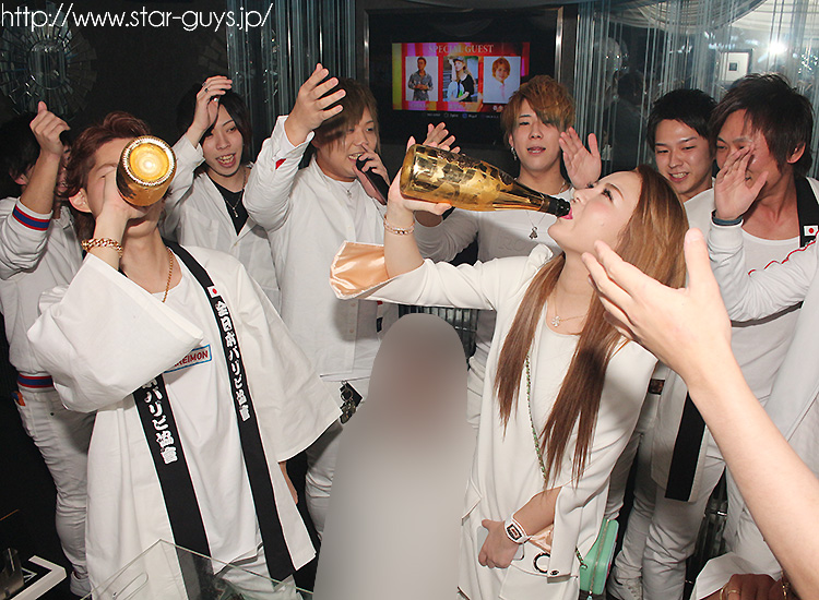 皆さんが同時に数本のドラゴンシャンパンを直ビンイッキで飲みます☆