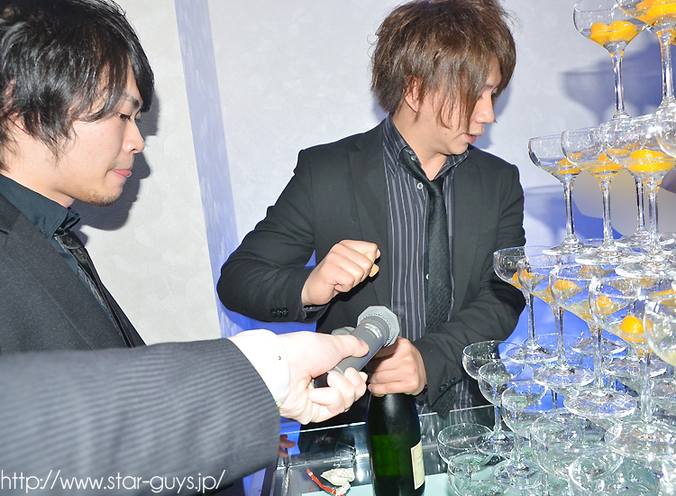 シャンパンが降ろされ、勢いよくコルクをオープン!!