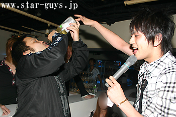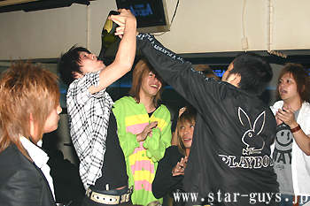 別のお席からもシャンパンを頂きました! 主役にたくさん飲ませようと、なつくんがビンを押さえる! Σ(・ω・ノ)ノ!