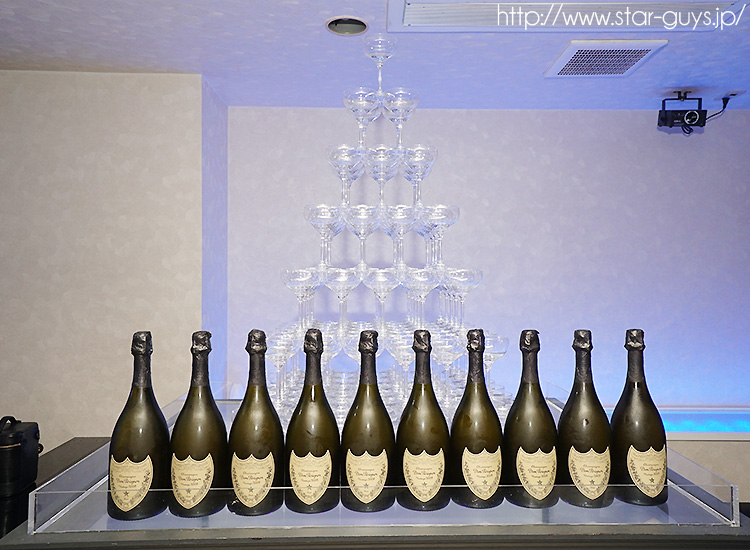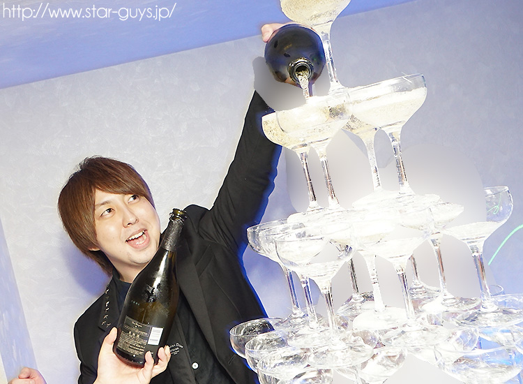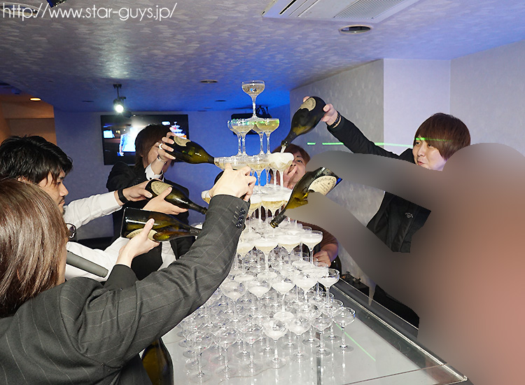 シャンパンタワーがスタート!!心地よい音が店内に響き渡りました♪