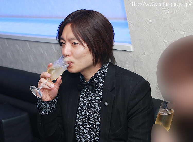 双熾くんのお席でシャンパンがおろされましたよ~!! グラスに入ったシャンパンをグイグイ飲んでいきます♪
