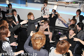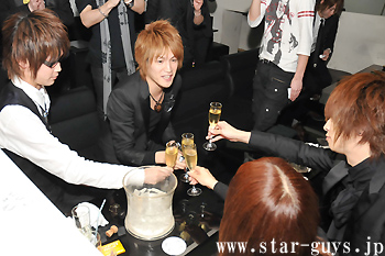 椿座丸くんの席でシャンパンコールが行われた後にお客さんをまじえて記念撮影♪