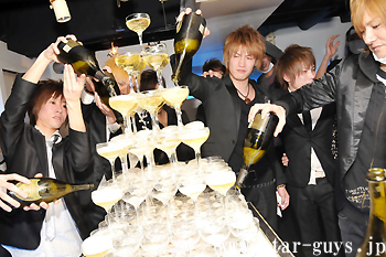 すべてのシャンパンを飲みきった後、タワー台に残されたシャンパンを頭から浴びる恒例のイベントへ移行! コチラは瓜流チーフが浴びているところ(・∀・)
