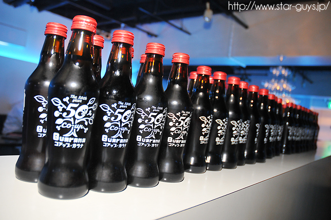 用意された48本のガラナを次々と開封するやタワーに注ぎ込むる座丸くん! タワーが褐色に染まっていきます☆