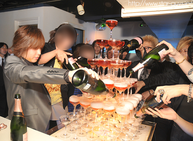 タワーの土台にたまったシャンパンはスタッフの頭からぶっかけます(・∀・) もはや恒例イベントとなっていますが、今回餌食になったのは哀斗代表でしたよΣ(゚д゚;)